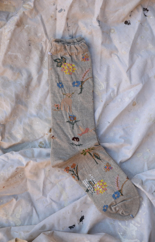 Beige Garden Flowers Socks