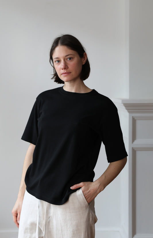 Black Cotton Silk Relaxed Tee