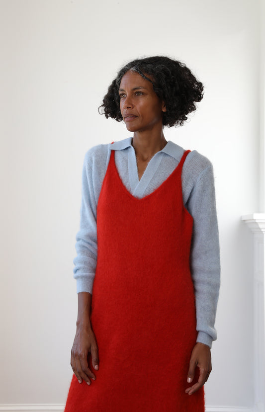 Garment-dyed Baby Alpaca Fur Knit Dress