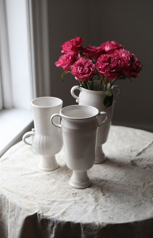 Medium Glossy White Pedestal Vase