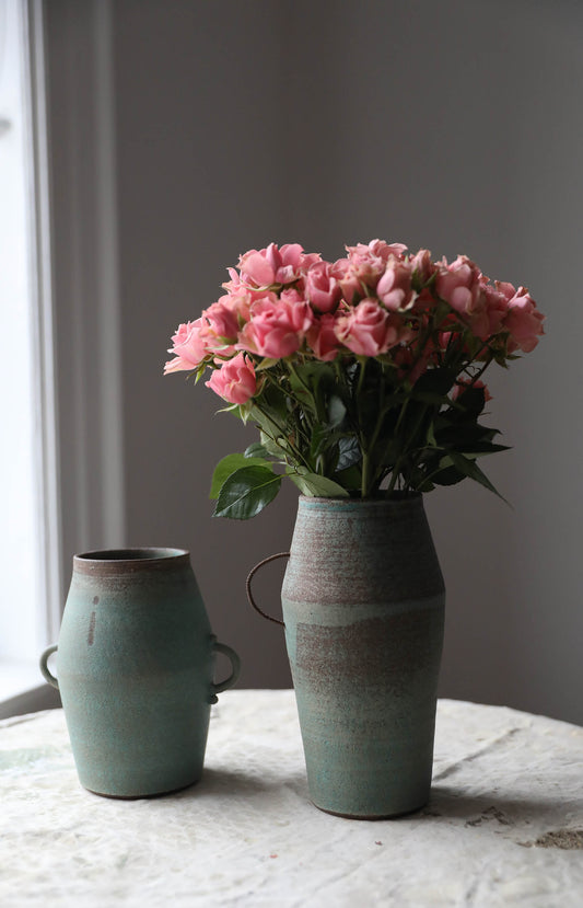 Matte Green Handled Vase