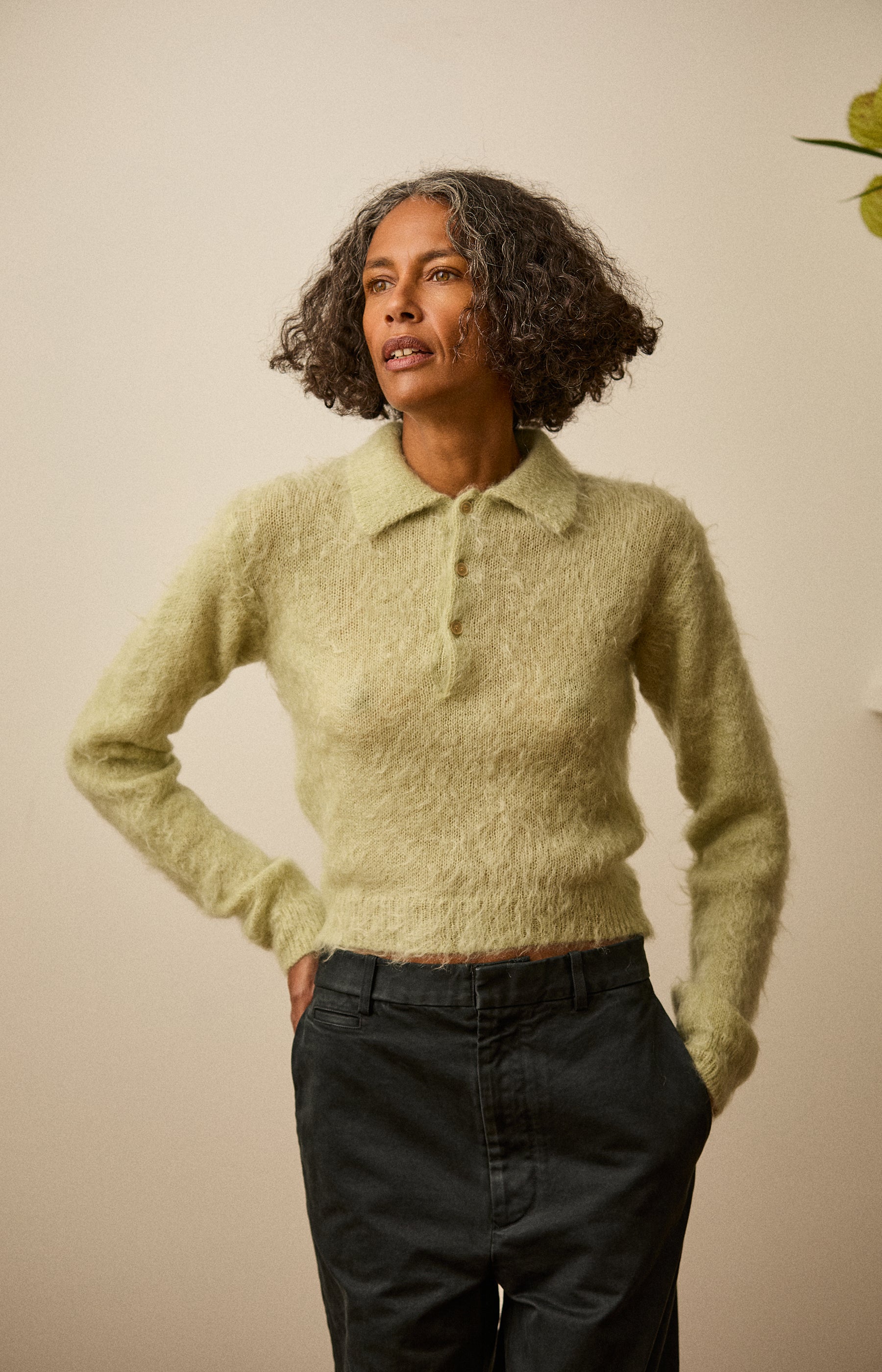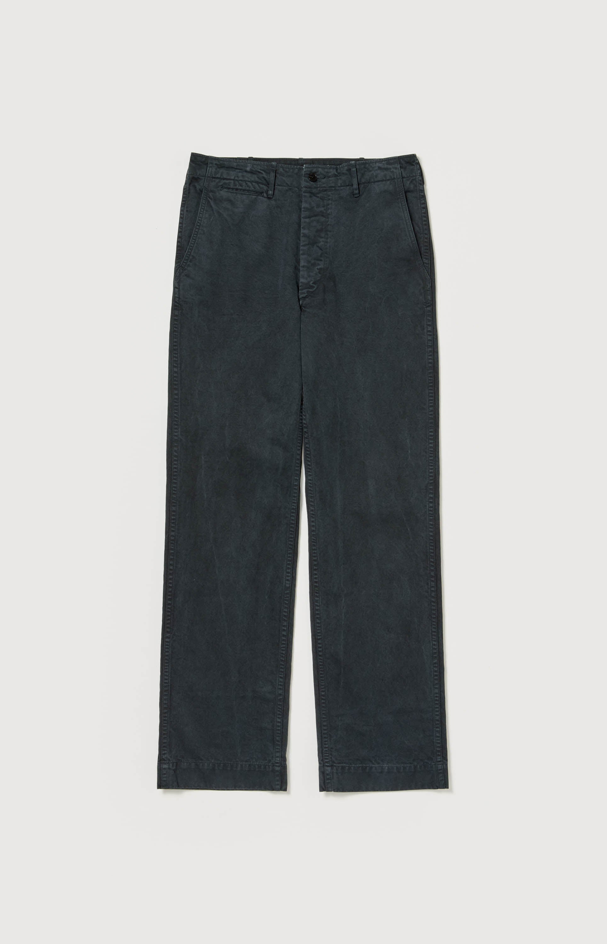 Auralee regular fit straight leg chino pants. Made from a material created with Egyptian extra-long staple Finx cotton, with threads twisted into three strands to bring out its natural fullness and smooth texture. After product dyeing, craftsmen carefully apply hand-finishing techniques, creating a unique, uneven color tone. The high-quality raw materials and meticulous handwork result in a fabric with depth and a refined finish.