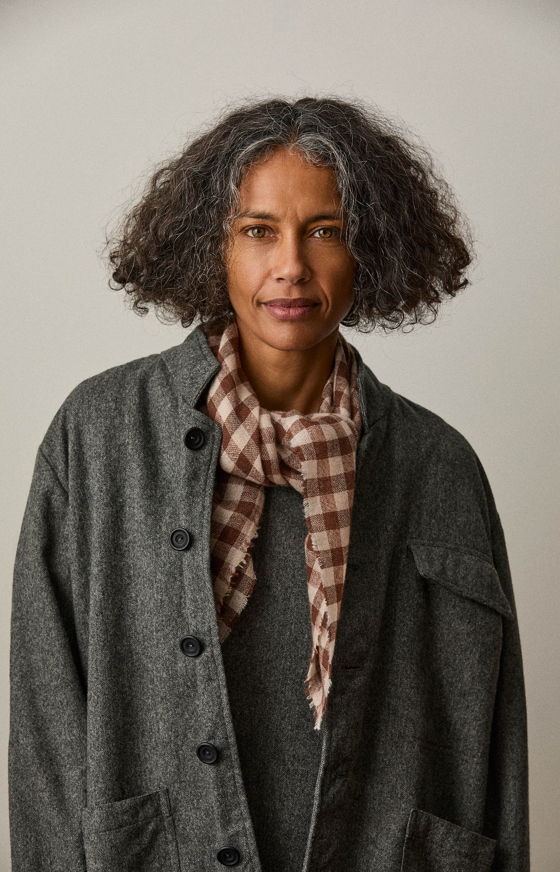 Brown & Ivory Check Cashmere Scarf