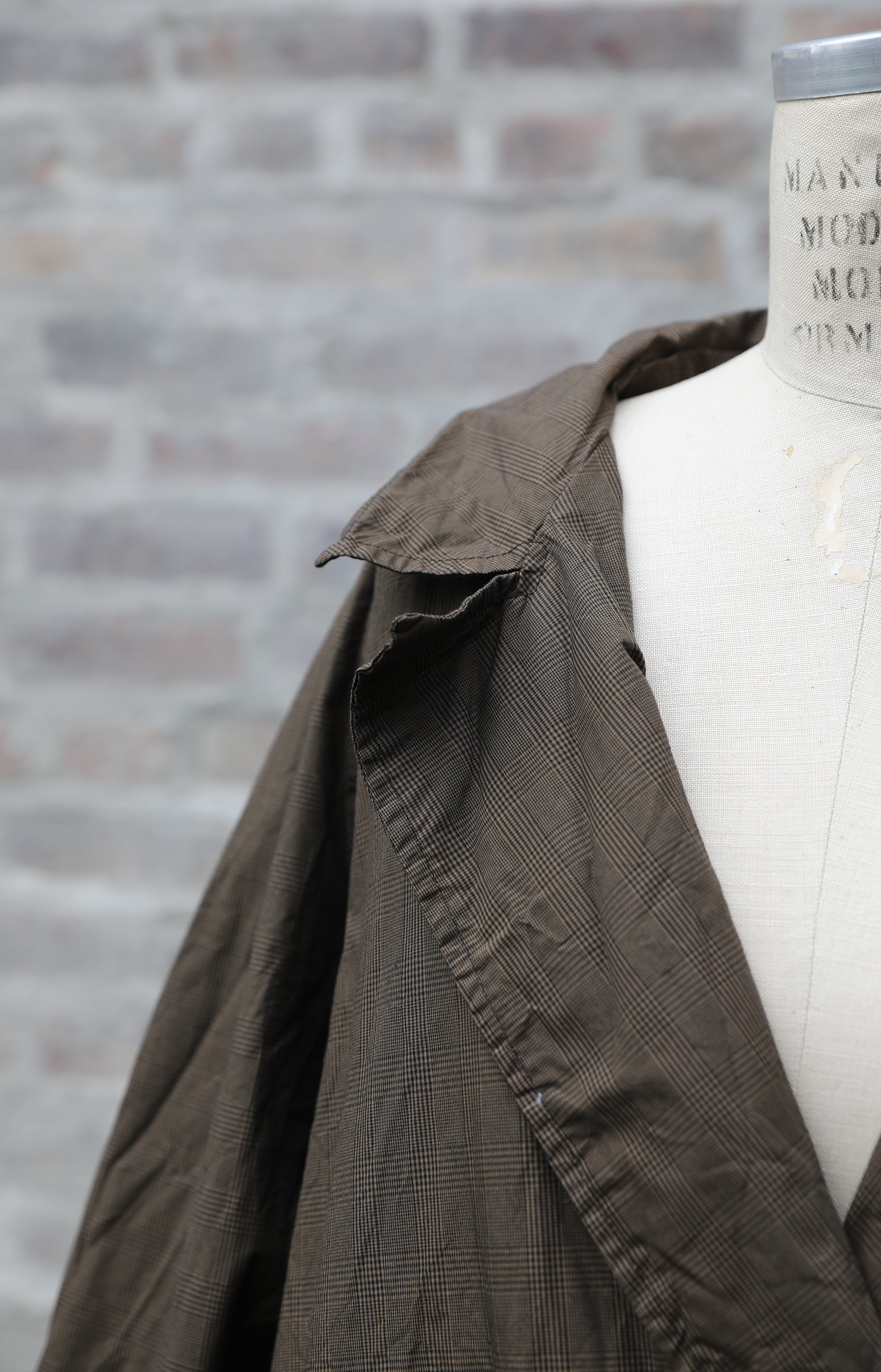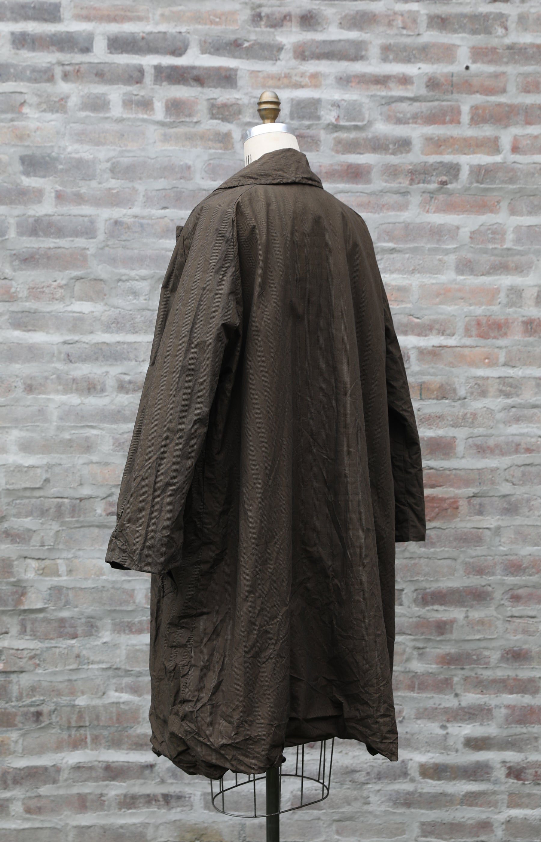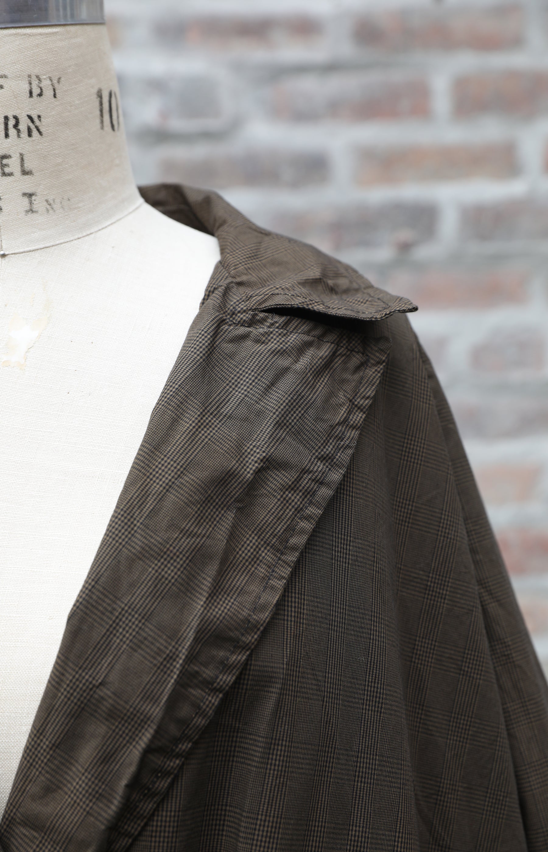Ricorrrobe double breasted coat in Prince of Wales glen plaid cotton. Has relaxed fit with button front and side slit pockets. Offered as one size in size small.
