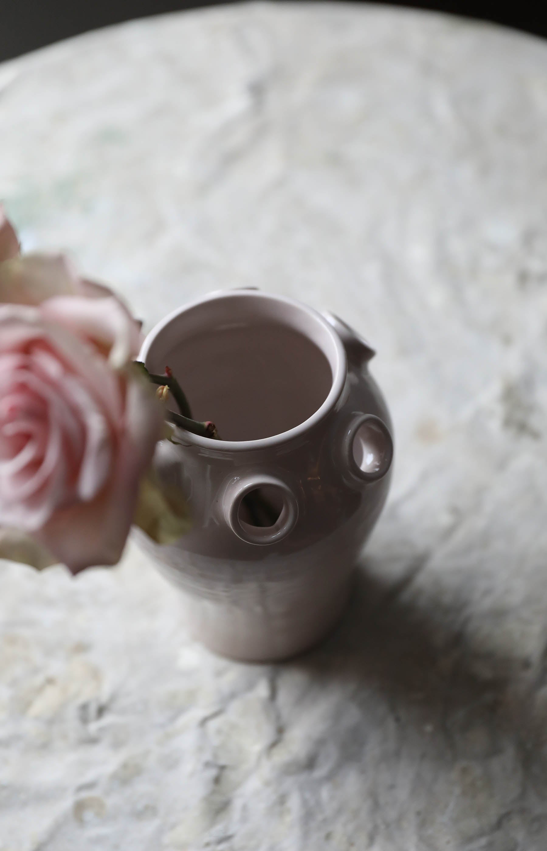 Wheel thrown glossy blush ceramic vase.