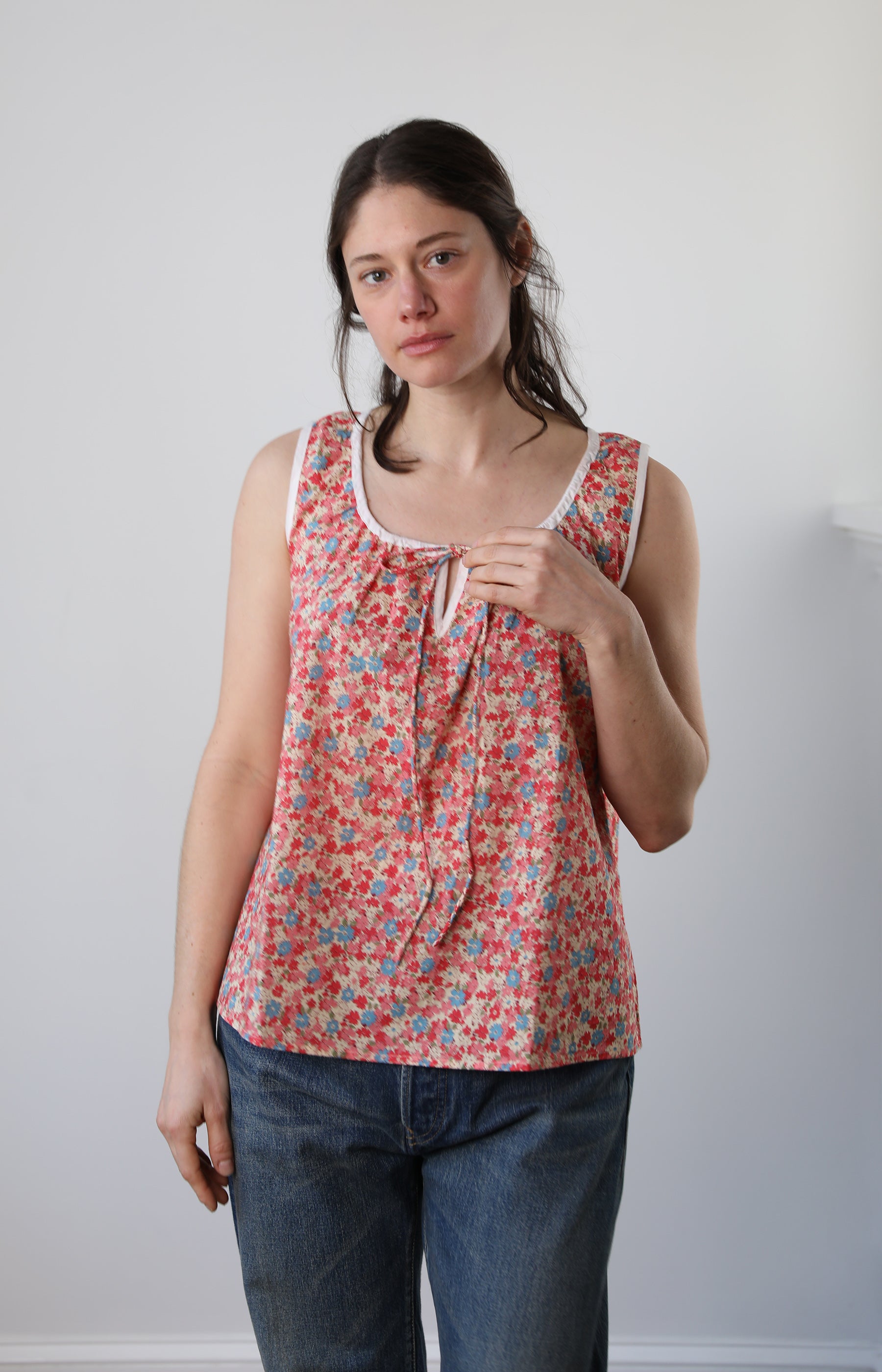 Domi lightweight cotton top that features a softly gathered, adjustable neckline. Light, unfussy, and finished with contrast bias trim, it’s a sleep-to-street style you’ll live in.