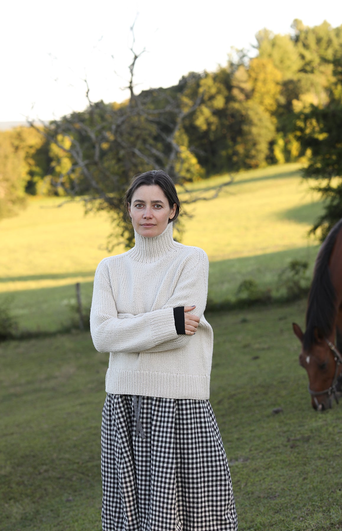 Wommelsdorff hand knit cashmere sweater in latte. Each piece is hand-knitted in Berlin from the finest cashmere and has an incredible feeling. The sweater has dropped shoulders and a ribbed turtleneck, hem and cuffs.