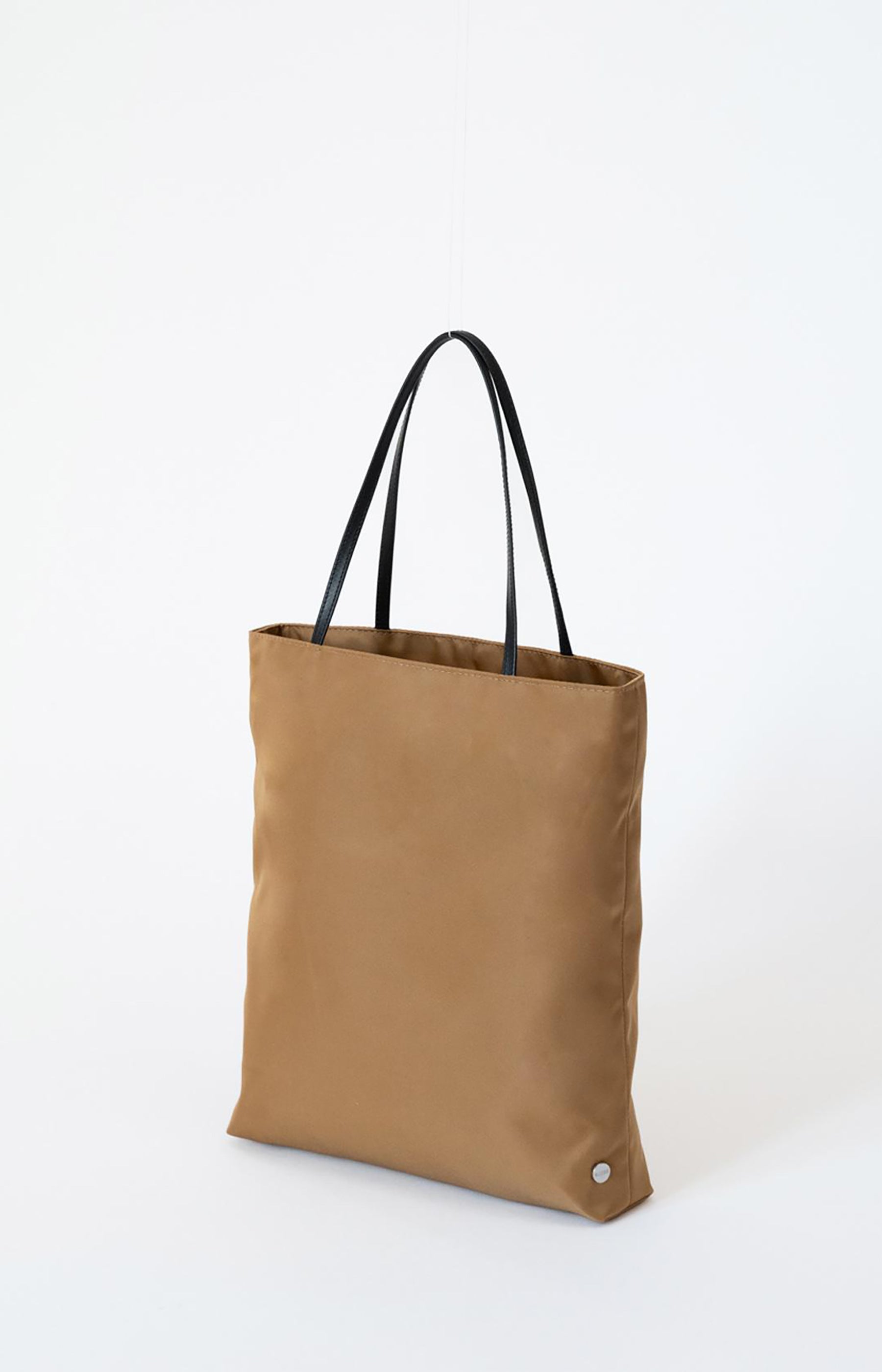 Valesque small satin nylon tote pouch with narrow leather handles.