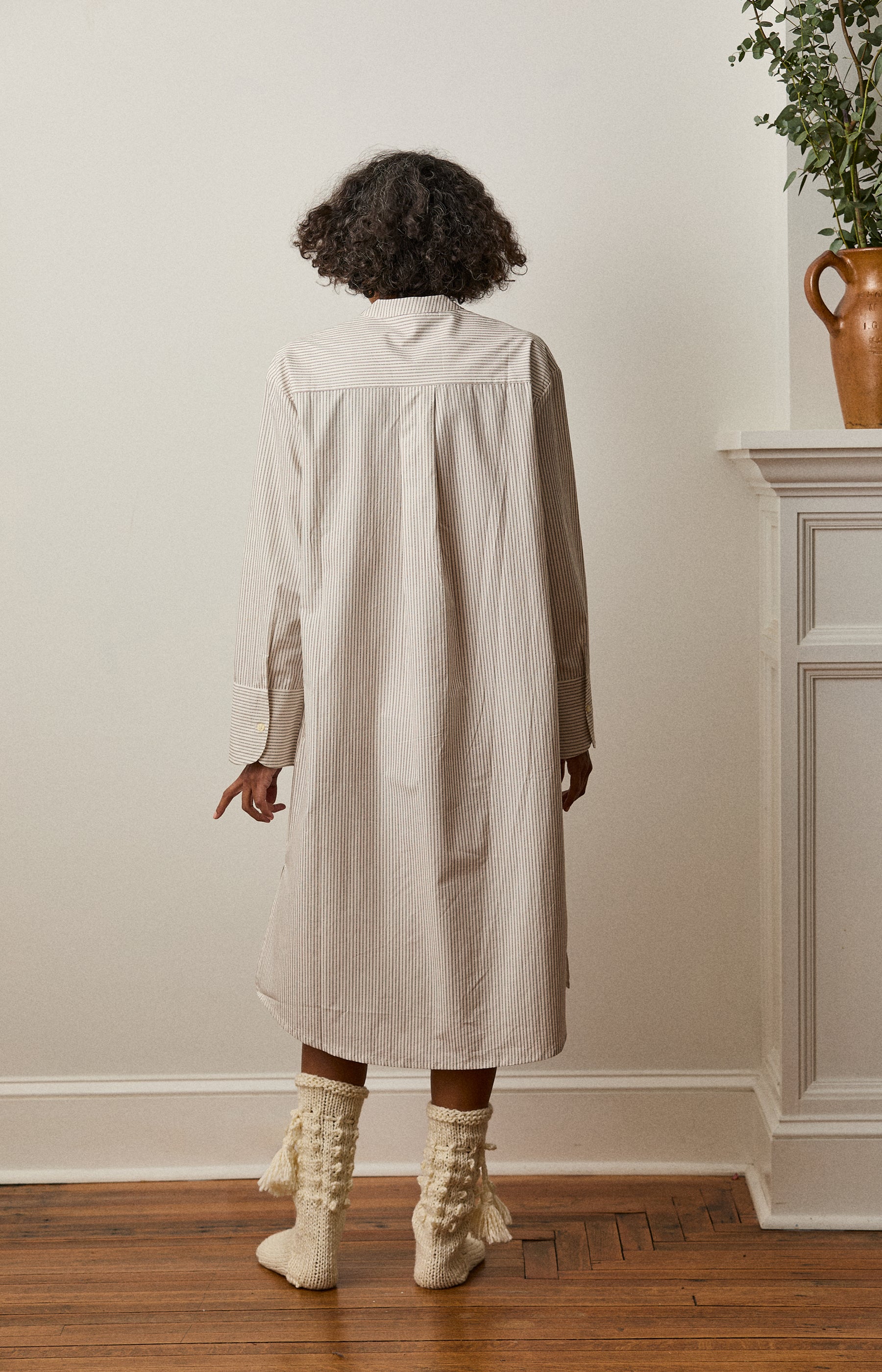 Domi classic nightshirt. Soft and simple, this oversized cut falls at the knee, features side-seam pockets, and 3-button down-the front-details.