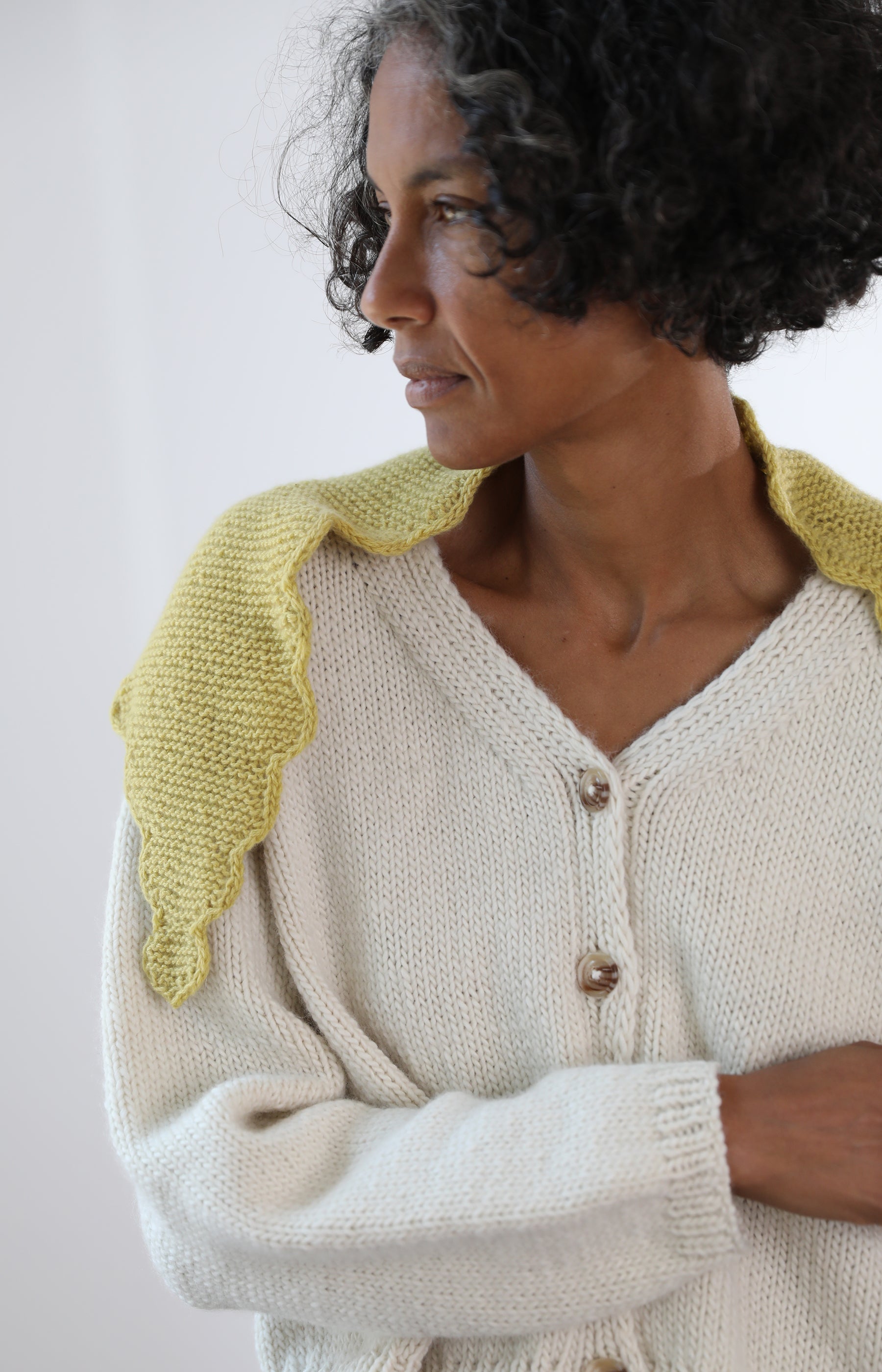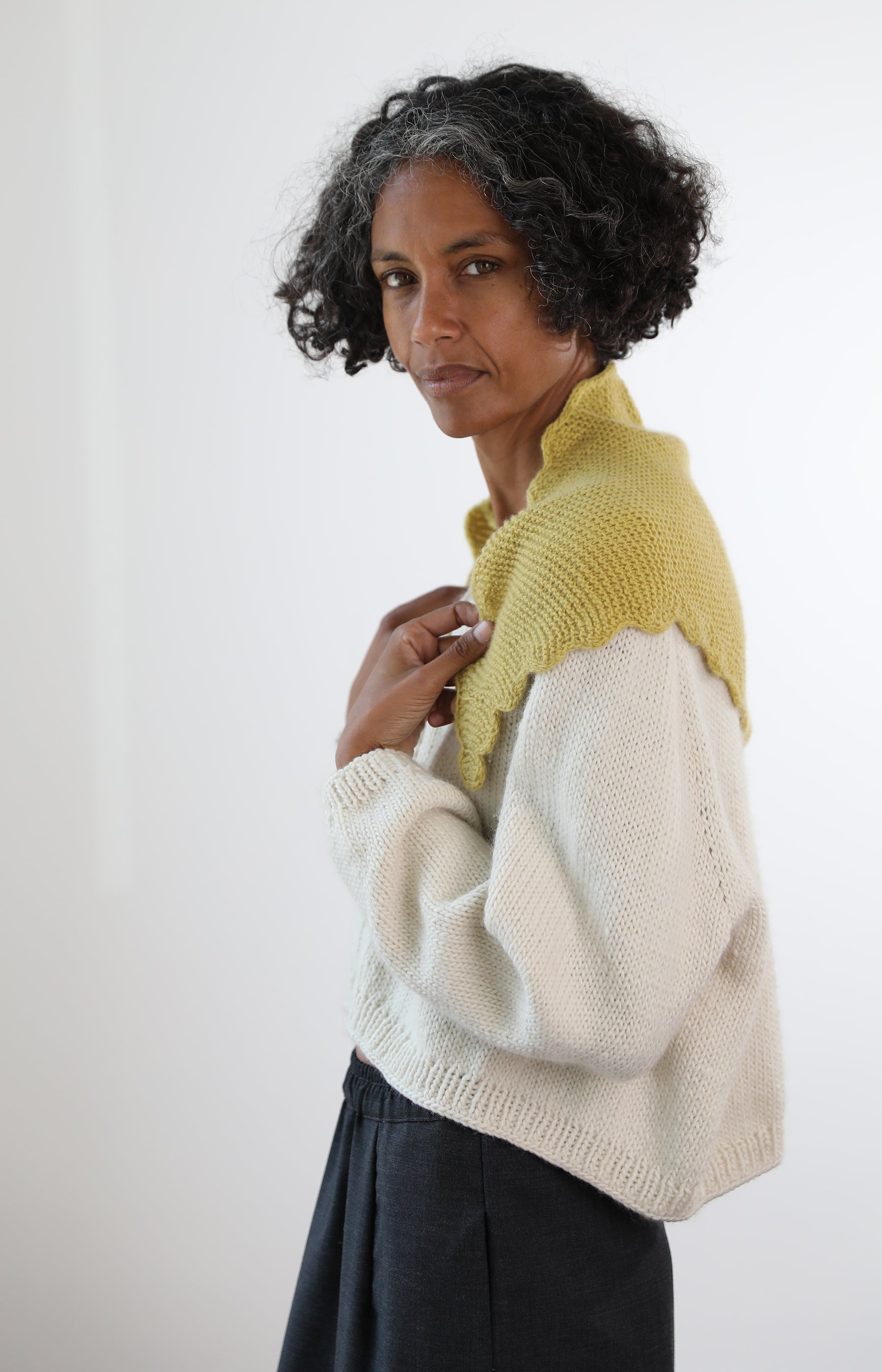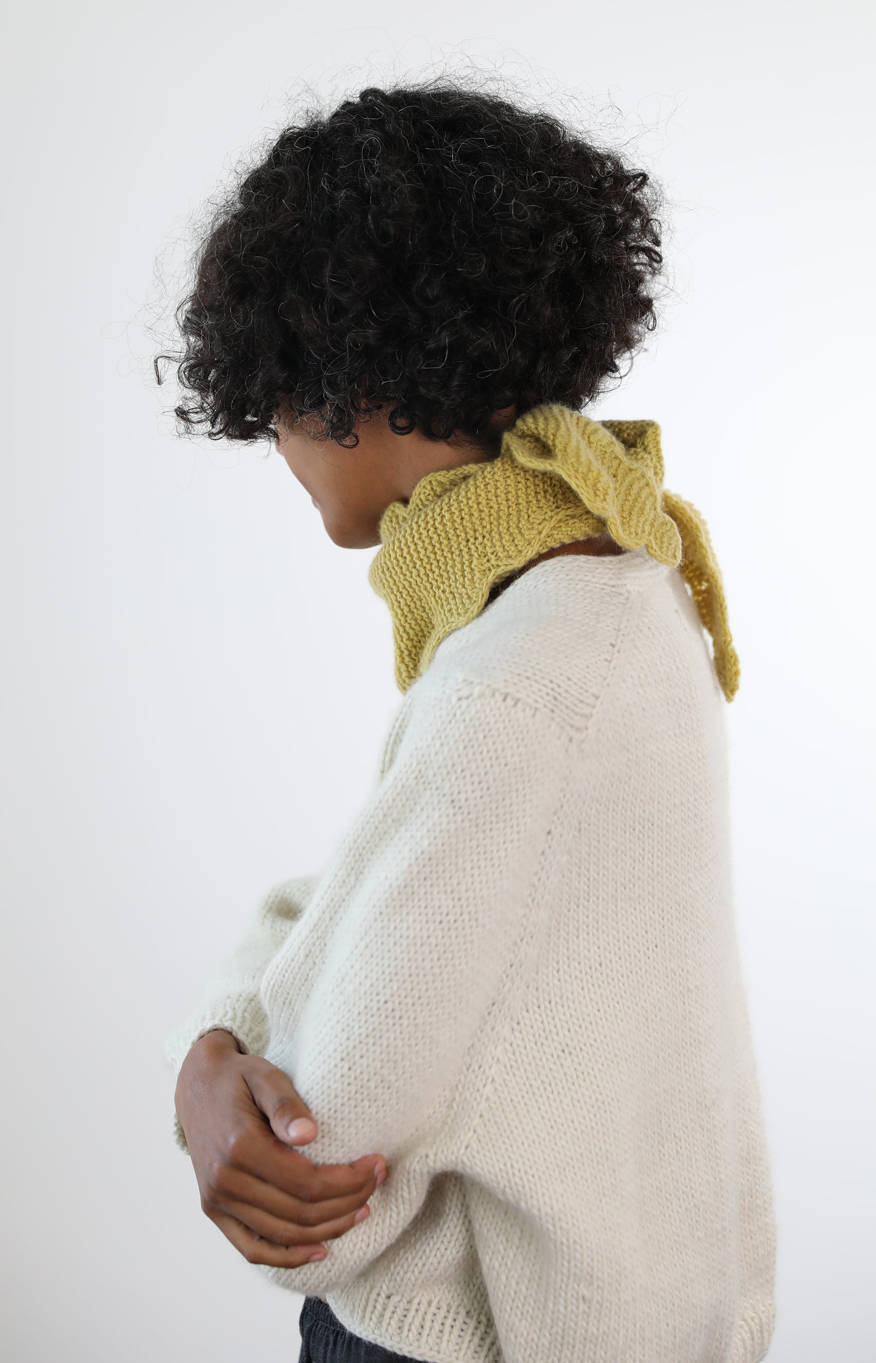Nitto yellow Italian brushed cashmere scarf with scalloped edges.