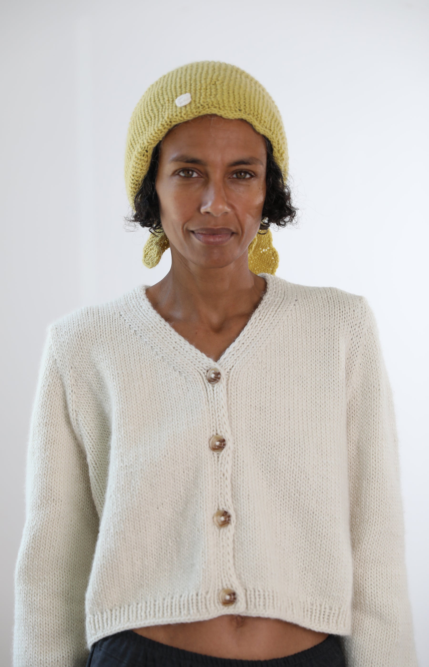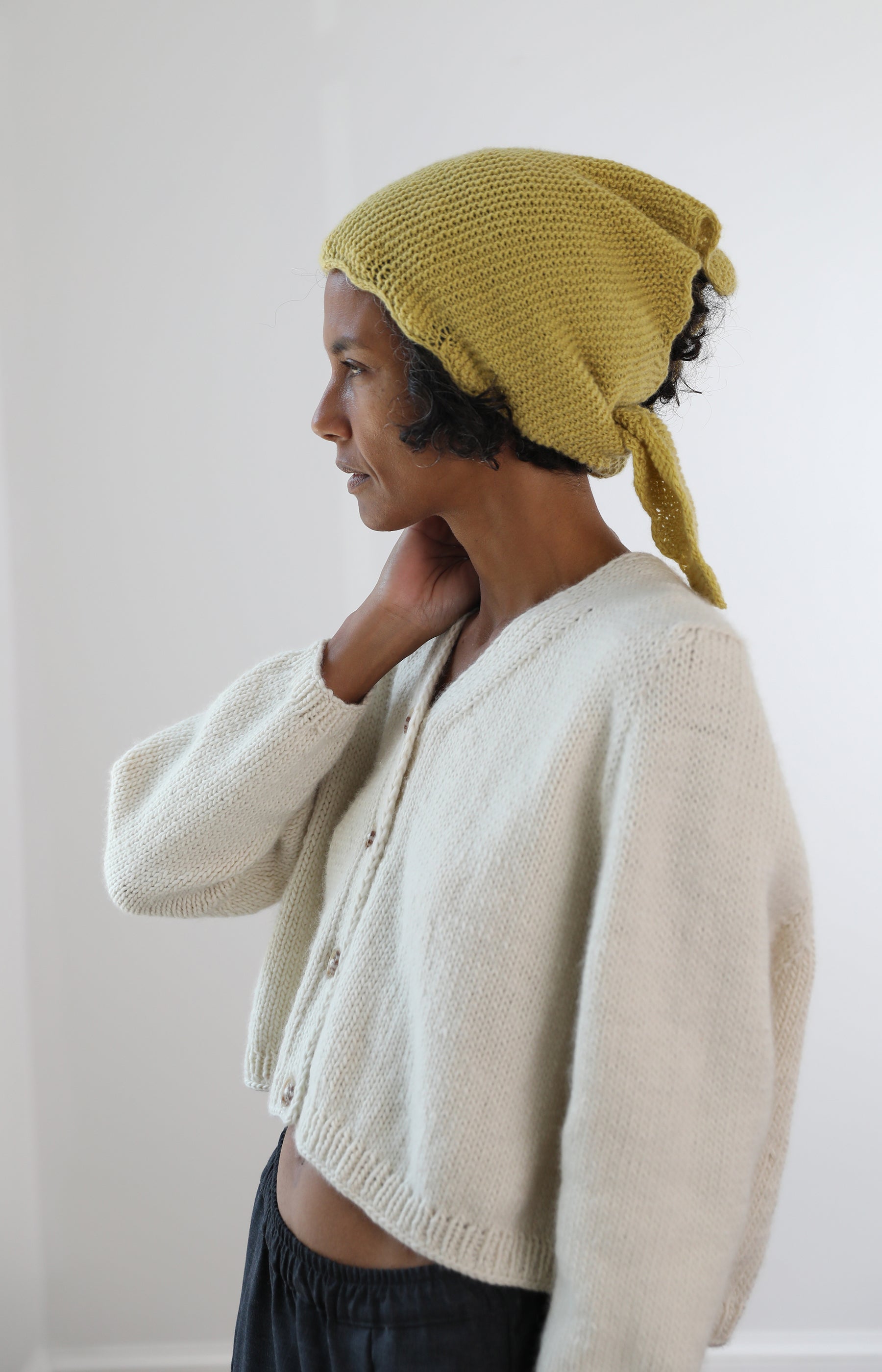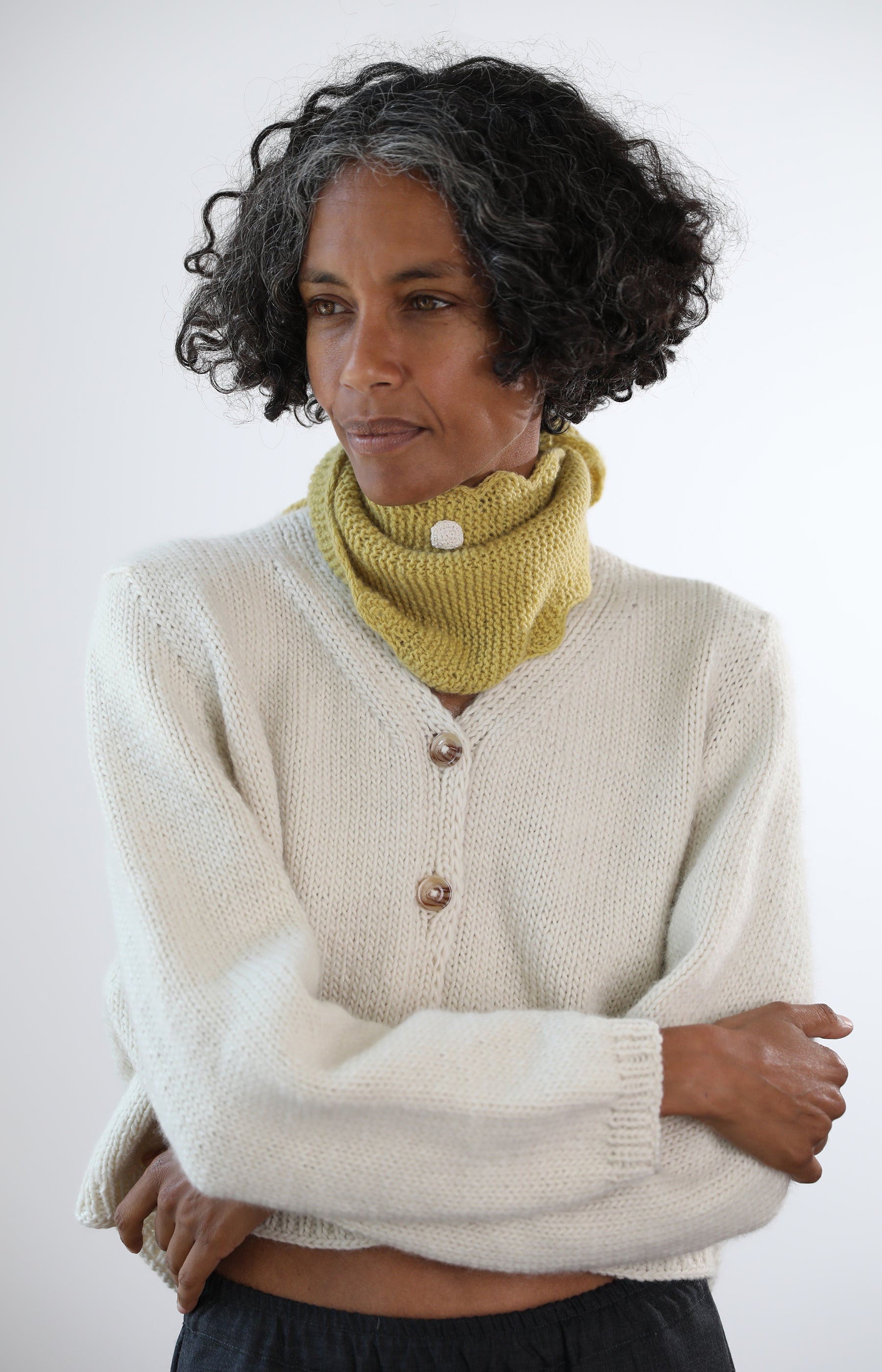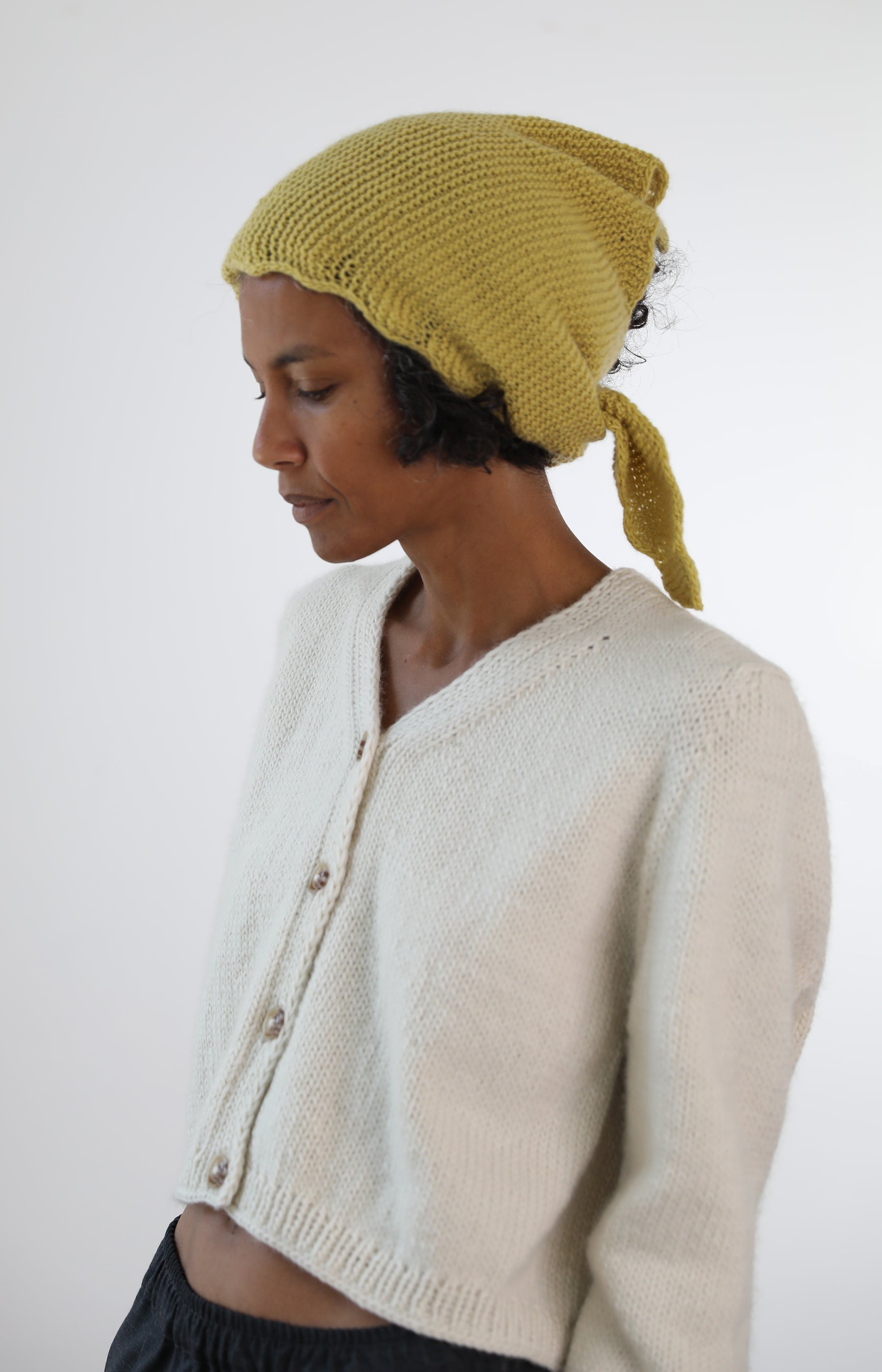 Nitto yellow Italian brushed cashmere scarf with scalloped edges.